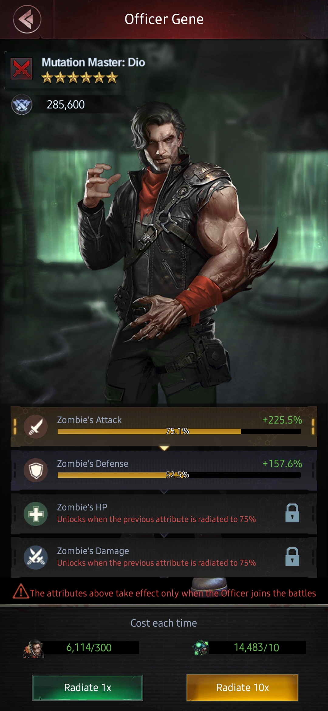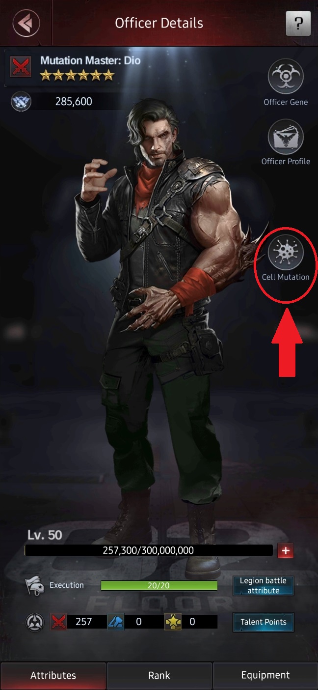 How to use? Choose the officer that you want to upgrade (Officer Gene must be MAX). Then choose Cell Mutation (look picture below).