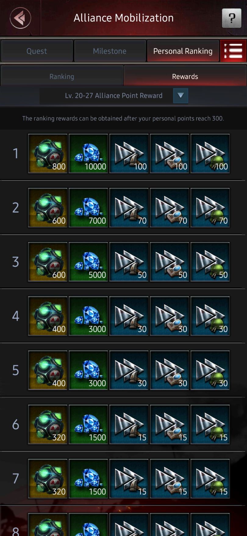 - Aliance Mobilization event if you take Personal Ranking 1 – 10